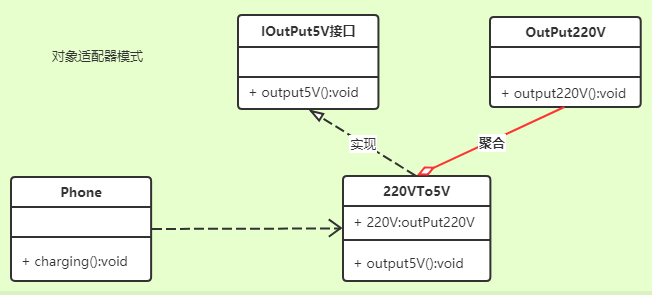 适配器类在需要持有被适配类的实例,所以在Phone充电方法中传入被适配类的对象